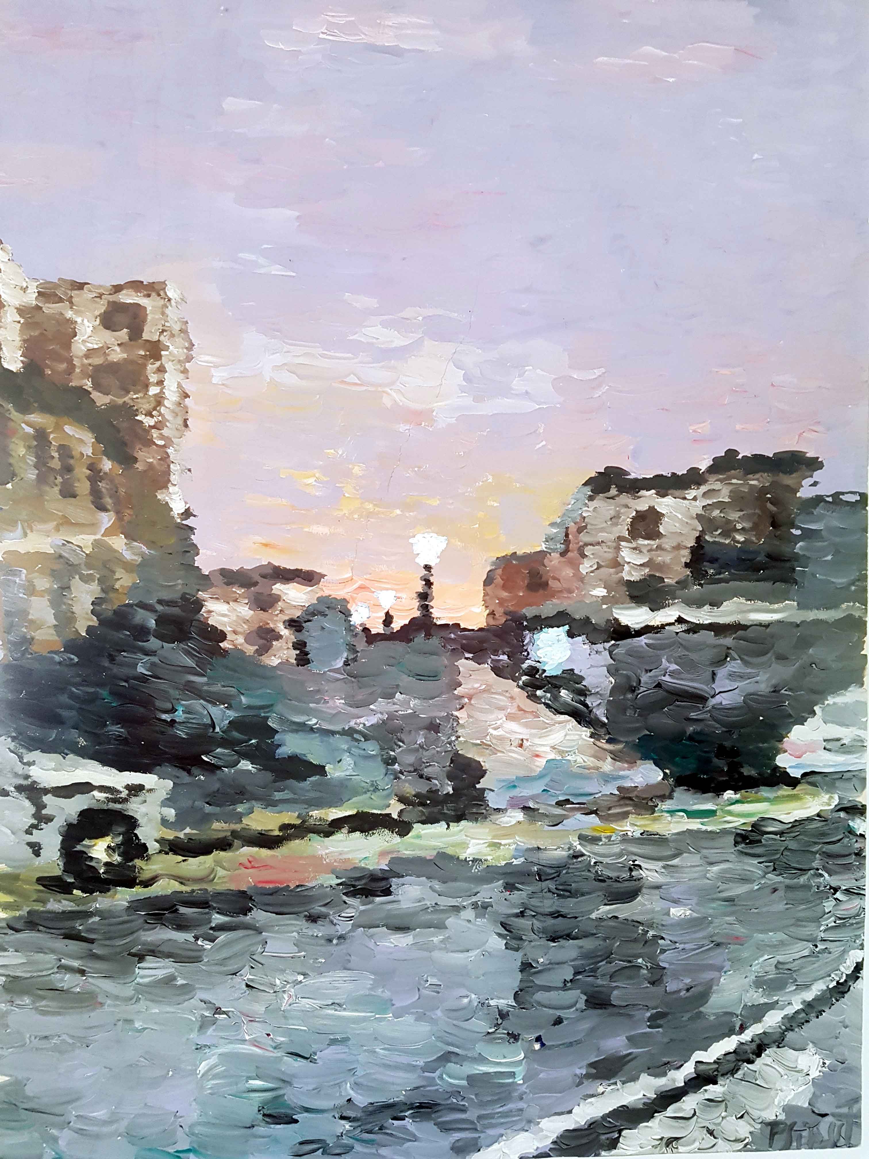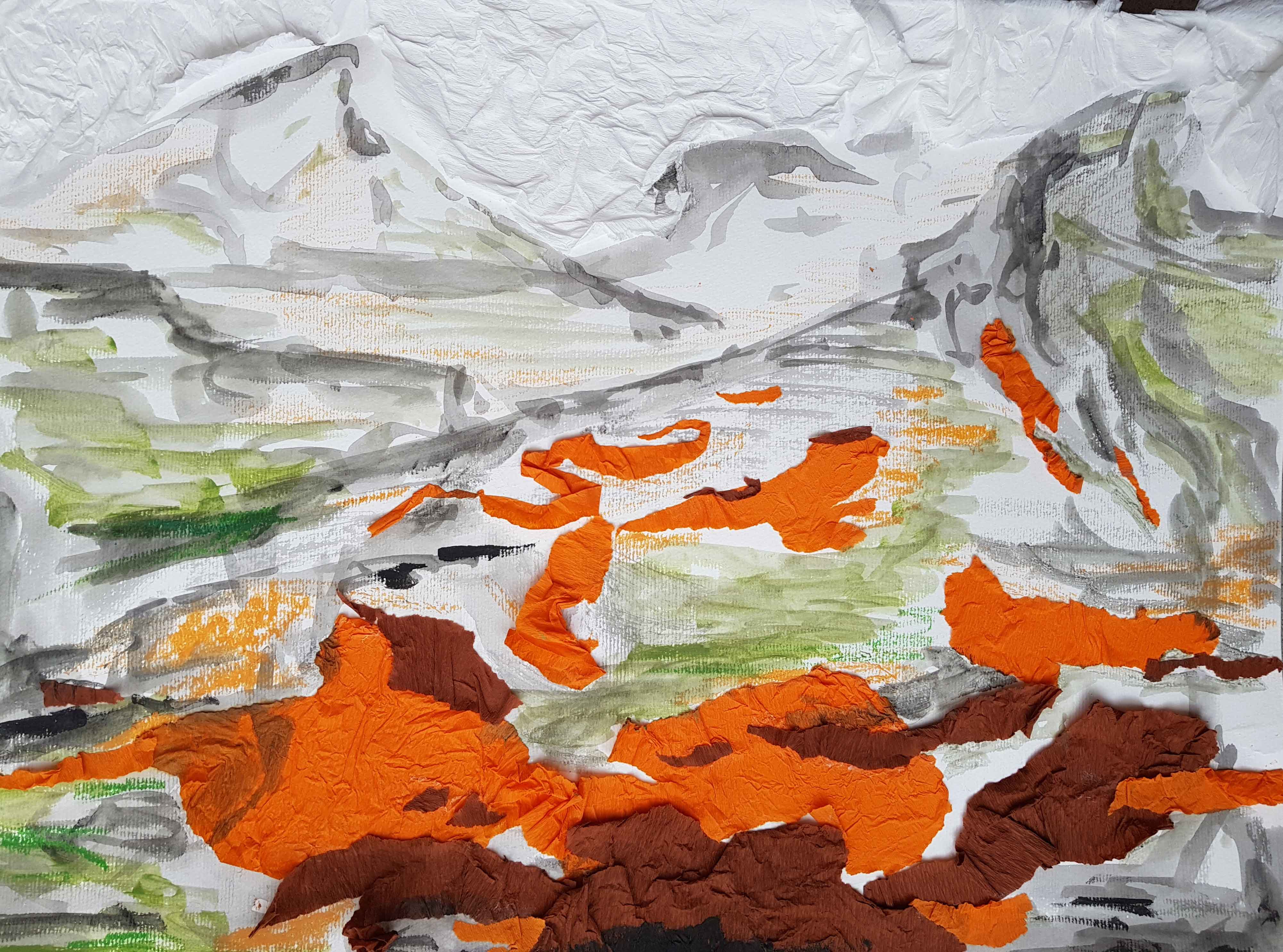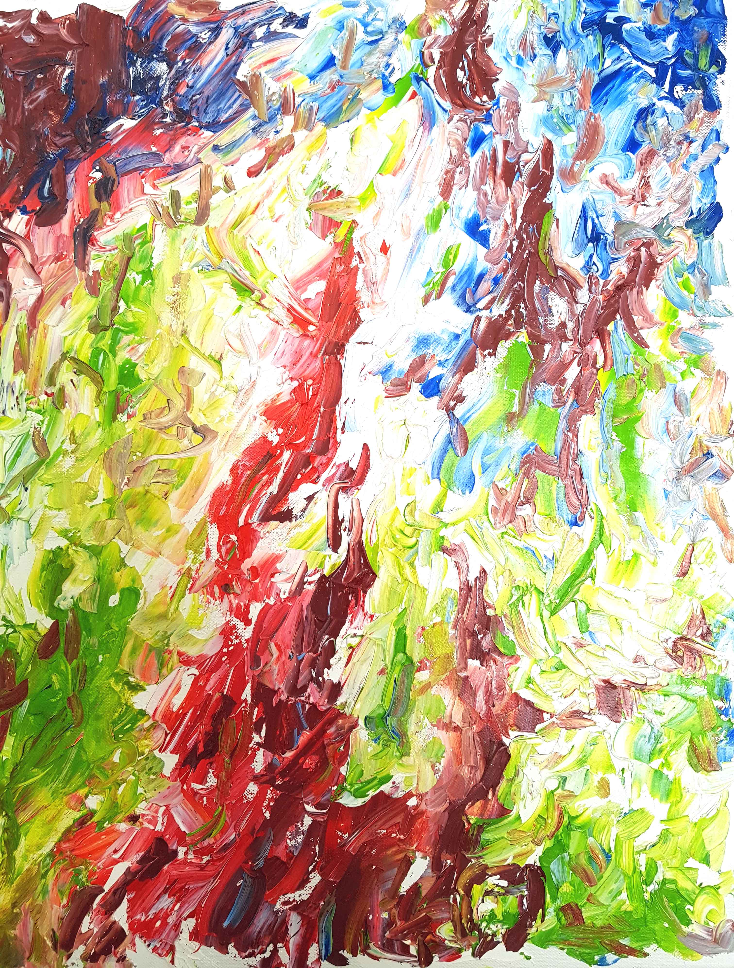 Sometimes I take my pencil in my hands and start sketching in simple forms what I see. It usually happens, when I am somehow impressed by my surrounding or just feel like. At the beginning it is only forms, later contrasts will be added and finally colors and movements superimposed by using varies of brushes.