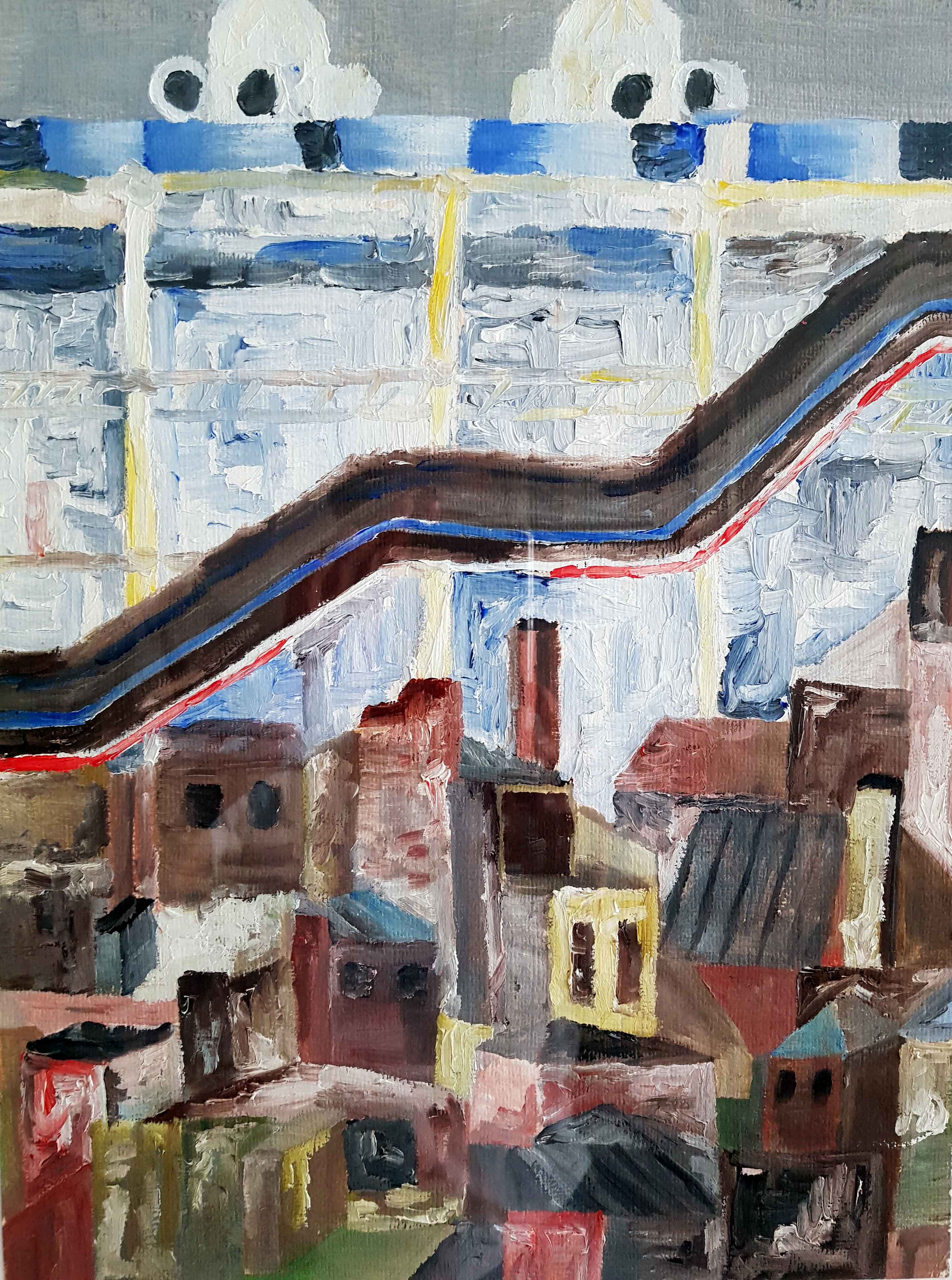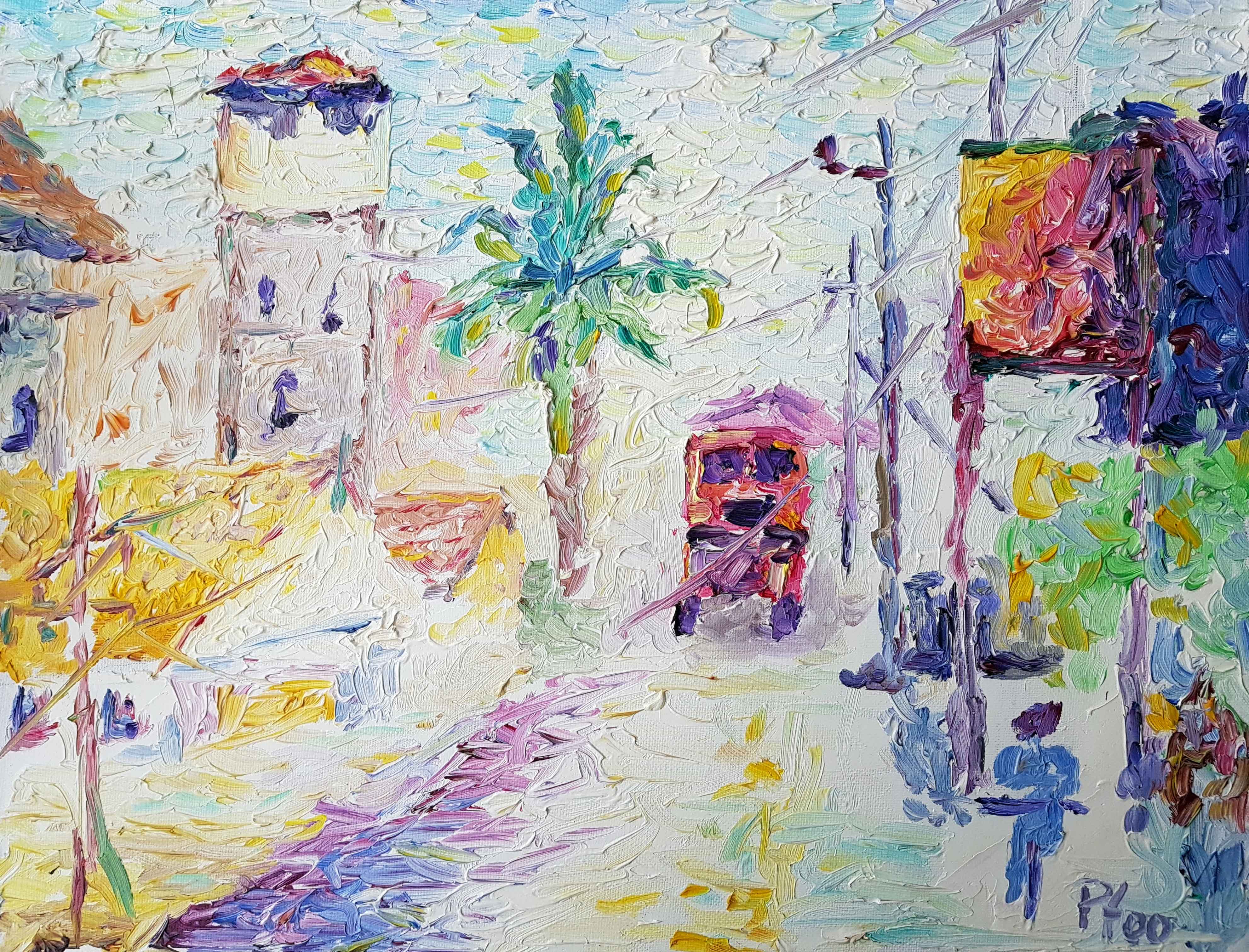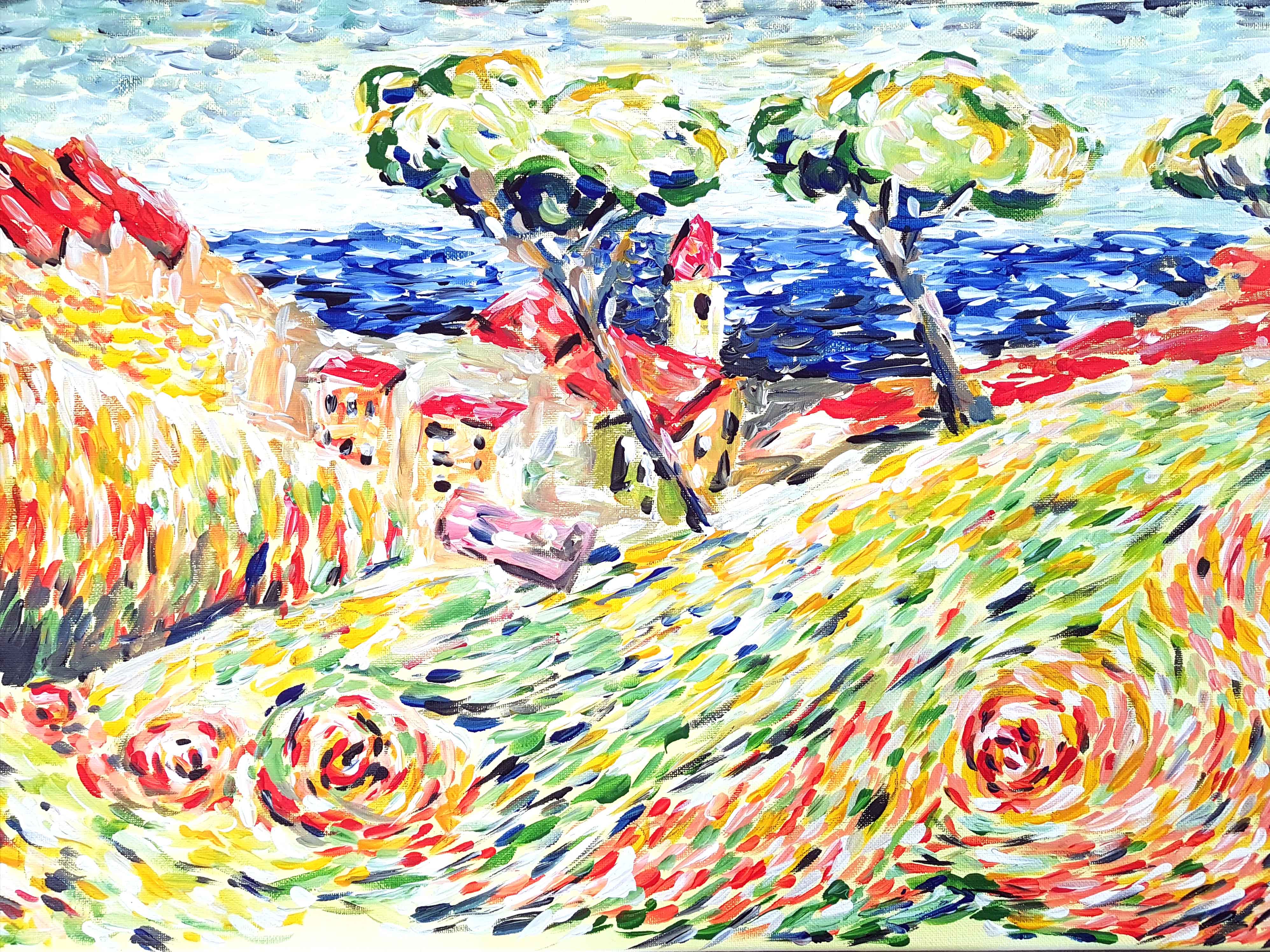 Sometimes I take my pencil in my hands and start sketching in simple forms what I see. It usually happens, when I am somehow impressed by my surrounding or just feel like. At the beginning it is only forms, later contrasts will be added and finally colors and movements superimposed by using varies of brushes.